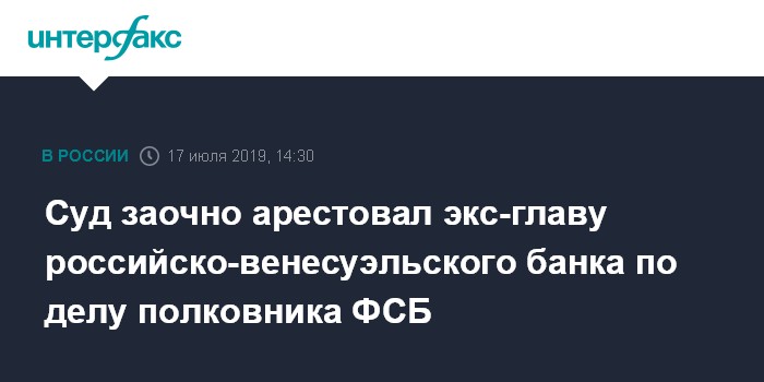 Суд заочно арестовал экс-главу российско-венесуэльского банка по делу полковника ФСБ