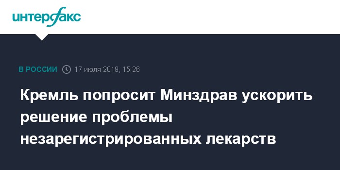 Кремль попросит Минздрав ускорить решение проблемы незарегистрированных лекарств