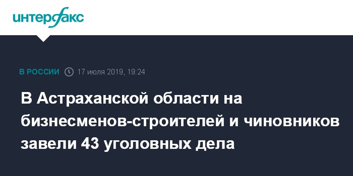 Москва. 17 июля. INTERFAX.RU - После проверки сферы капитального ремонта многоквартирных домов и переселения граждан из ветхого и аварийного жилья в Астрахани в регионе возбуждены 43 уголовных дела.