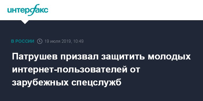 Москва. 19 июля. INTERFAX.RU - Российскую молодежь необходимо защитить от посягательств иностранных спецлужб и НКО и поставить заслон перед деструктивной информацией, особенно в интернете, считает секретарь Совета безопасности России Николай Патрушев.
