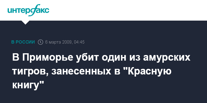 В Приморье убит один из амурских тигров, занесенных в "Красную книгу"