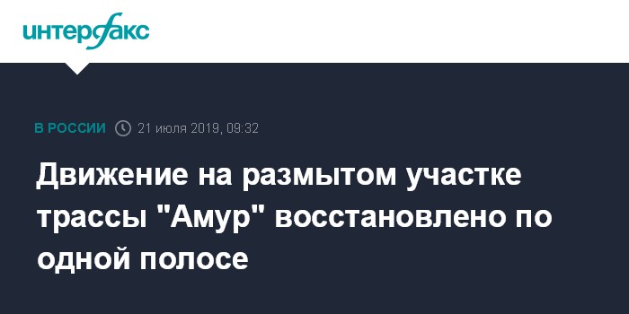 Москва. 21 июля. INTERFAX.RU - Восстановлено движение по одной полосе на перекрытом из-за провала участке федеральной трассы Чита - Хабаровск, сообщил агентству "Интерфакс" глава Сковородинского района Амурской области Алексей Прохоров.