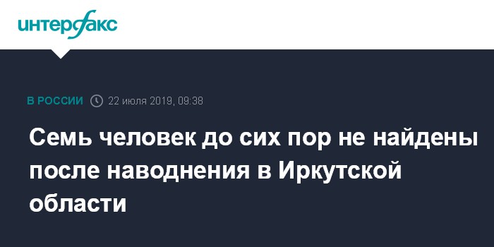 Москва. 22 июля. INTERFAX.RU - Семь человек по-прежнему числятся пропавшими без вести после наводнения в Иркутской области, сообщили "Интерфаксу" в региональном управлении МЧС в понедельник.