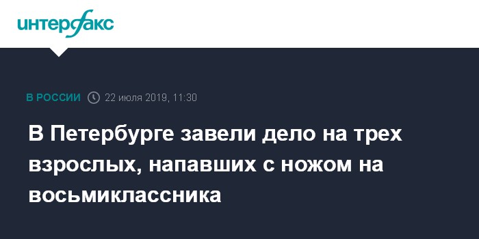 В Петербурге завели дело на трех взрослых, напавших с ножом на восьмиклассника