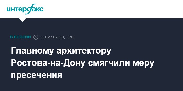 Москва. 22 июля. INTERFAX.RU - Суд смягчил меру пресечения главному архитектору Ростова-на-Дону Роману Илюгину.
