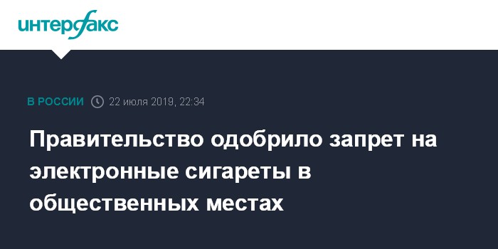 Москва. 22 июля. INTERFAX.RU - Правительство РФ поддержало с учётом замечаний предложение распространить действие "антитабачного" закона на электронные сигареты, говорится в официальном отзыве.