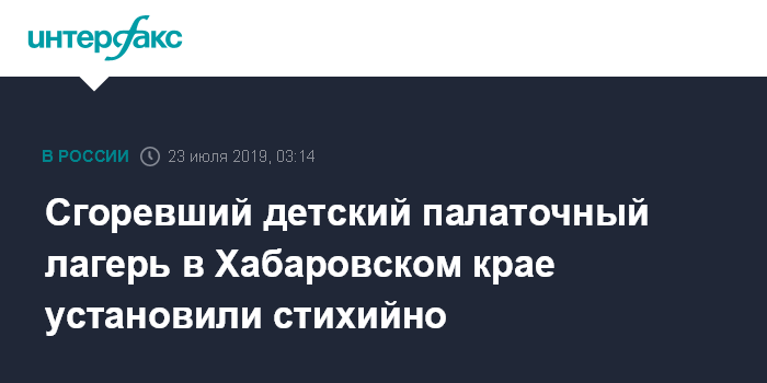 Сгоревший детский палаточный лагерь в Хабаровском крае установили стихийно
