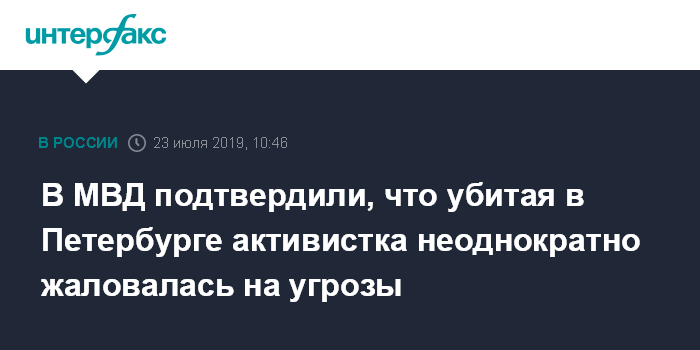 В МВД подтвердили, что убитая в Петербурге активистка неоднократно жаловалась на угрозы