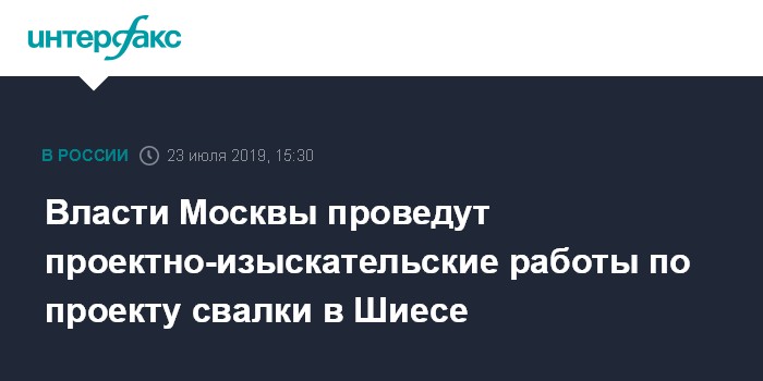 Москва. 23 июля. INTERFAX.RU - Власти Москвы в соответствии с поручением президента России проведут проектно-изыскательские работы по проекту экотехнопарка "Шиес", заявили "Интерфаксу" в пресс-службе мэра и правительства Москвы во вторник.
