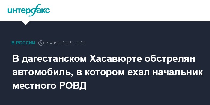 "Около 20:40 по бронированному автомобилю УАЗ, в котором находился начальник Хасавюртовского РОВД, примерно в пятистах метрах от райотдела, неизвестные открыли огонь по нему из гранатометов и автоматического оружия. Автомобиль получил механические повреждения. Начальник РОВД не пострадал", - сказал представитель РОВД.