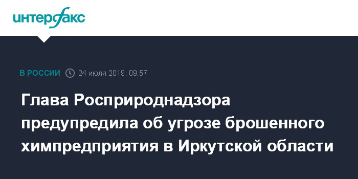 Глава Росприроднадзора предупредила об угрозе брошенного химпредприятия в Иркутской области