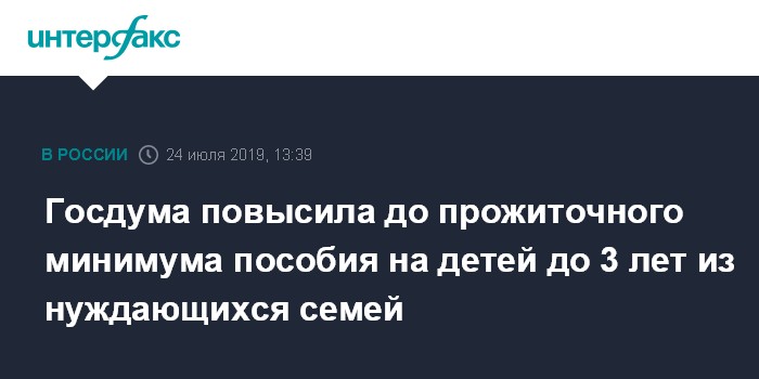 Госдума повысила до прожиточного минимума пособия на детей до 3 лет из нуждающихся семей