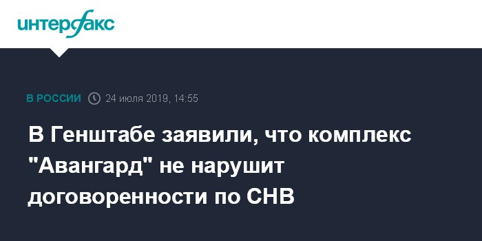 Москва. 24 июля. INTERFAX.RU - Ракетный комплекс "Авангард" не нарушает договоренностей по сокращению стратегических наступательных вооружений (СНВ-3), он будет принят на вооружение до конца года. Об этом сообщил первый замначальника Главного оперативного управления Генштаба ВС РФ генерал-лейтенант Виктор Познихир.