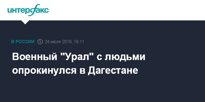Москва. 24 июля. INTERFAX.RU - В Дагестане перевернулся военный "Урал". По словам источника, авария случилась возле села Калиновка Тарумовского района.