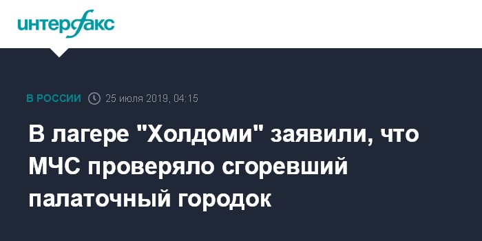 В лагере "Холдоми" заявили, что МЧС проверяло сгоревший палаточный городок