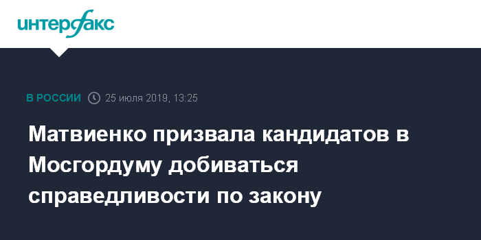Москва. 25 июля. INTERFAX.RU - Спикер Совета Федерации Валентина Матвиенко допустила, что ряду кандидатов в Мосгордуму было несправедливо отказано в регистрации, однако она предложила им пройти весь путь законного обжалования данного решения.