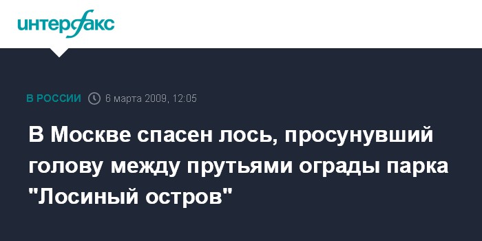 "Сегодня около 10:30 поступил сигнал от автомобилистов с 97-го км Московской кольцевой автодороги , которая в этом месте граничит с национальным парком "Лосиный остров". Они сообщили, что лось просунул голову между прутьями железной ограды, отделяющей национальный парк от МКАД, и застрял", - рассказал собеседник агентства.