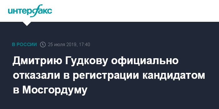 Москва. 25 июля. INTERFAX.RU - Мосгоризбирком (МГИК) на заседании в четверг официально отказал Дмитрию Гудкову в регистрации кандидатом в Мосгордуму.