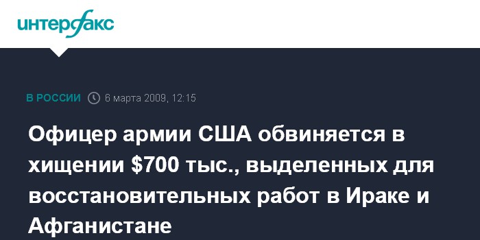 Офицер армии США обвиняется в хищении $700 тыс., выделенных для восстановительных работ в Ираке и Афганистане