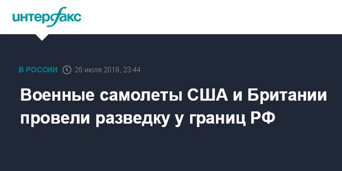 Москва. 25 июля. INTERFAX.RU - Стратегический беспилотник и два военных самолета США, а также один британский самолет совершили многочасовые разведывательные полеты у границ России в районе Черного моря и Балтики, следует из мониторинговых данных западных авиационных ресурсов.