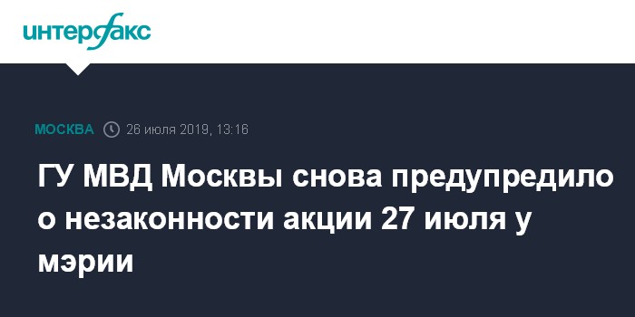 В первый раз ГУ МВД столицы предупреждало о незаконности акции 27 июля во вторник, 23 июля.