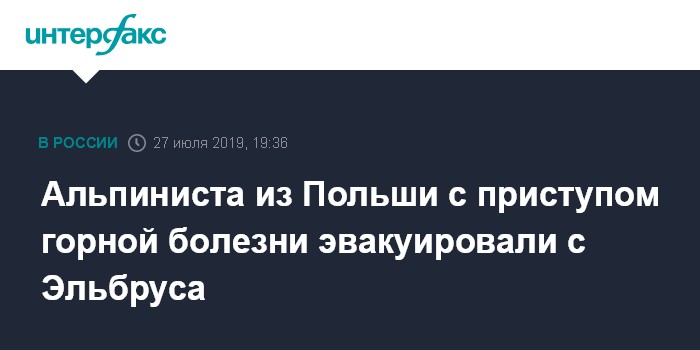 Ранее в субботу сообщалось, что в 16:05 поступила информация, что на Эльбрусе, на высоте 5200 метров над уровнем моря, мужчине из Польши стало плохо (признаки горной болезни). Альпинист совершал восхождение в составе зарегистрированной группы из двух человек.