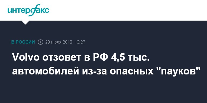 Volvo отзовет в РФ 4,5 тыс. автомобилей из-за опасных "пауков"