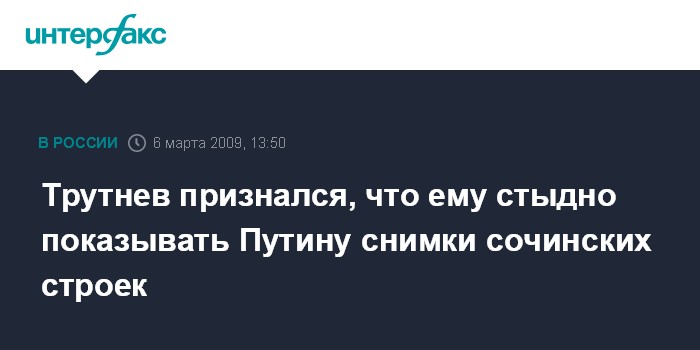 Трутнев признался, что ему стыдно показывать Путину снимки сочинских строек