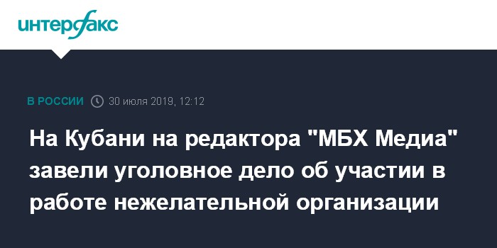 На Кубани на редактора "МБХ Медиа" завели уголовное дело об участии в работе нежелательной организации