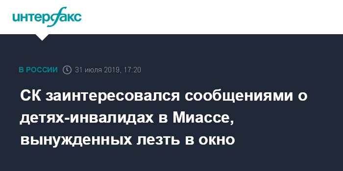 Москва. 31 июля. INTERFAX.RU - Следователи управления СКР по Челябинской области заинтересовались сообщениями о том, что в Миассе дети-инвалиды вынуждены лезть в оконный проем, чтобы попасть в единственный в городе реабилитационный центр.