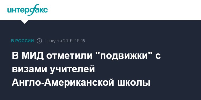 Москва. 1 августа. INTERFAX.RU - В вопросе с визами для преподавателей Анло-Американской школы в Москве достигнуты "определенные подвижки" "на основе взаимности", сообщила на брифинге представитель МИД России Мария Захарова.