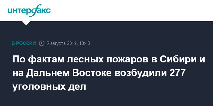 По фактам лесных пожаров в Сибири и на Дальнем Востоке возбудили 277 уголовных дел