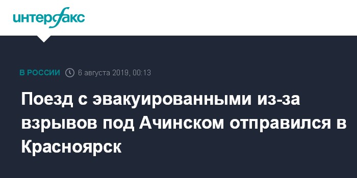 Поезд с эвакуированными из-за взрывов под Ачинском отправился в Красноярск