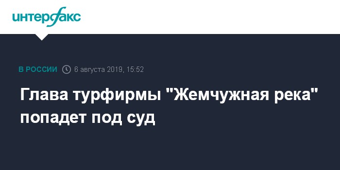 Москва. 6 августа. INTERFAX.RU - Прокуратура направила в суд дело главы турфирмы "Жемчужная река", клиенты которой в конце 2018 года застряли в Китае, сообщили в Генпрокуратуре России во вторник.