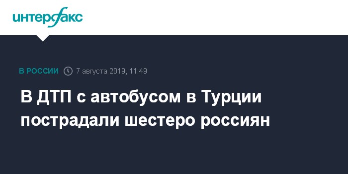 Москва. 7 августа. INTERFAX.RU - Автобус с туристами попал в аварию в Турции. Шесть россиян доставили с различной степенью повреждений в больницу провинции, сообщили "Интерфаксу" в генконсульстве России в Анталье.