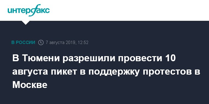 Москва. 7 августа. INTERFAX.RU - Администрация Тюмени согласовала проведение в городе пикета в поддержку протестных акций в Москве.