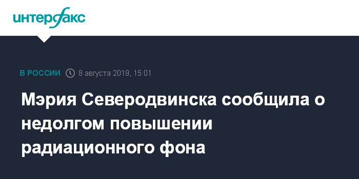 "В 11.50 по Москве 8 августа датчики АСКРО (Автоматизированная система контроля радиационной обстановки) в Северодвинске зафиксировали кратковременное повышение радиационного фона", - говорится в сообщении.