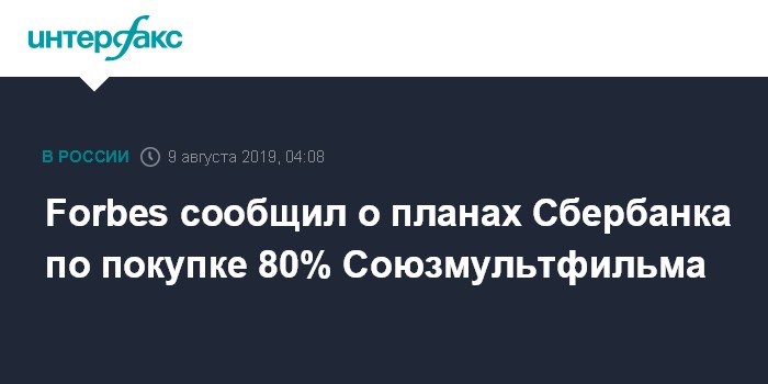 Forbes сообщил о планах Сбербанка по покупке 80% Союзмультфильма