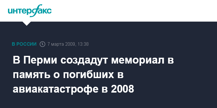Москва. 7 марта. INTERFAX.RU - Специально созданный общественный совет подвел итоги конкурса по созданию мемориала в память о погибших в авиакатастрофе в Перми в сентябре 2008 года.