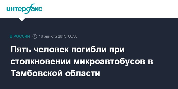 Пять человек погибли при столкновении микроавтобусов в Тамбовской области