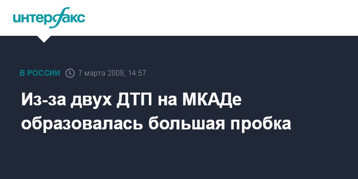 Москва. 7 марта. INTERFAX.RU - Из-за двух дорожно-транспортных происшествий на Московской кольцевой автодороге образовалась многокилометровая пробка, передает корреспондент "Интерфакса".