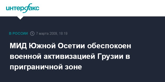 Москва. 7 марта. INTERFAX.RU - МИД Южной Осетии выразил серьезную обеспокоенность, связанную с приготовлениями грузинских военных близ границ республики.