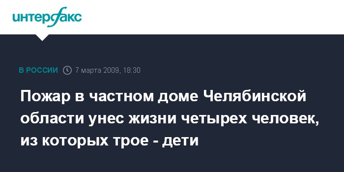 Пожар в частном доме Челябинской области унес жизни четырех человек, из которых трое - дети