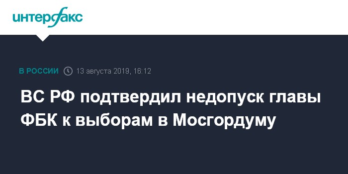 ВС РФ подтвердил недопуск главы ФБК к выборам в Мосгордуму