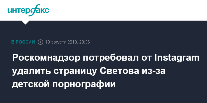 Роскомнадзор потребовал от Instagram удалить страницу Светова из-за детской порнографии