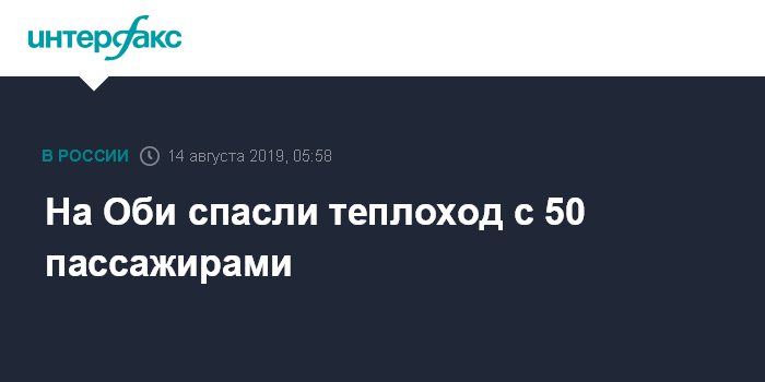 Москва. 14 августа. INTERFAX.RU - Следователи в Алтайском крае проверяют информацию о происшествии с теплоходом на реке Обь, который потерял управление и несся на камни с пассажирами на борту, сообщает в среду пресс-центр Западно-Сибирского следственного управления на транспорте СК РФ.