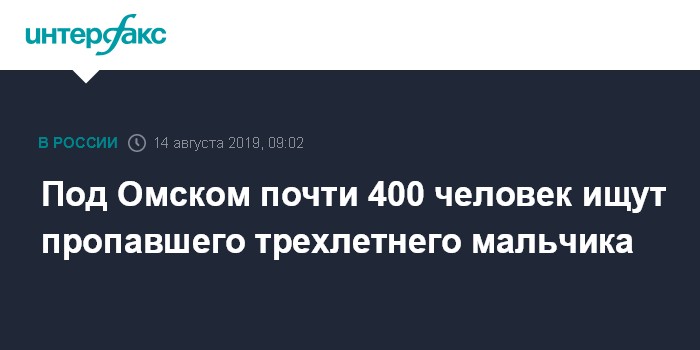Москва. 14 августа. INTERFAX.RU - В Омской области потерялся трехлетний мальчик. Поисками ребенка занимаются 400 человек.