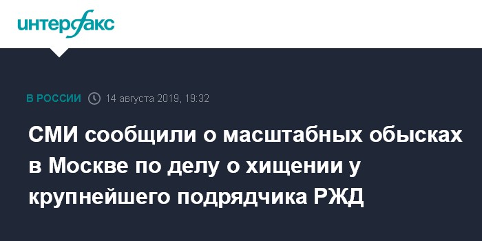 СМИ сообщили о масштабных обысках в Москве по делу о хищении у крупнейшего подрядчика РЖД