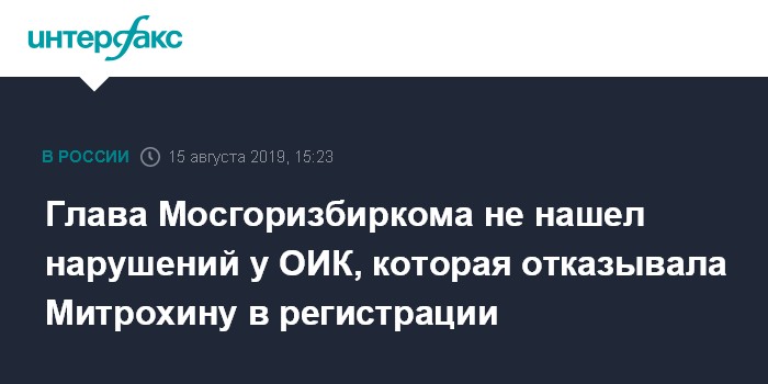 Глава Мосгоризбиркома не нашел нарушений у ОИК, которая отказывала Митрохину в регистрации