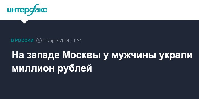 Москва. 8 марта. INTERFAX.RU - Сумку с миллионом рублей украли у мужчины, выходившего из многолюдного магазина в Западном округе Москвы в воскресенье утром, сообщил "Интерфаксу" источник в правоохранительных органах.